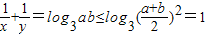 设x,y∈R,a>1,b>1,若ax=by=3,a+b=2