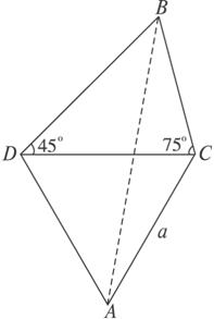 如图所示,我军阵地位于A点,我军两观察哨所分别位于C点和D点,△ACD成等边三角形.当敌人目标B出现时,我两地观察哨兵分别测得∠CDB=45°,∠BCD=75°,设AC=CD=a,求我军阵地A与敌人目标B间的距离.