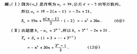(本小题满分14分)已知是首项为19,公差为-2的等差数列,为的前项和.(1)求通项及;(2)设是首项为1,公比为3的等比数列,求数列的通项公式及其前项和.