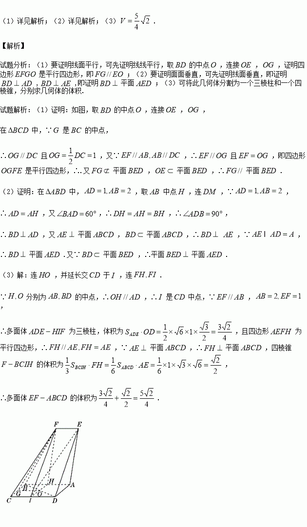 (3)求多面体的体积.