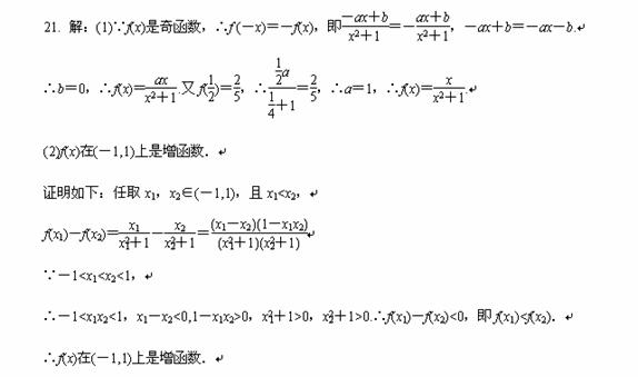 (2) 判断f ( x )在(-1,1)上的单调性,并用定义证明你的结论.