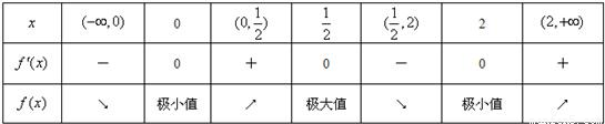 时,f'(x)=x(4x2-10x+4)=2x(2x-1)(x-2).