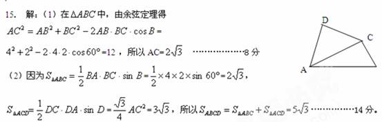 如图所示,在四边形中,满足AB=4, BC=2,,且为正三角形,