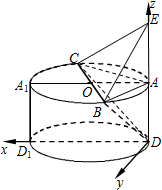一个几何体是由圆柱ADD1A1和三棱锥E-ABC组合而成,点A、B、C在圆柱上底面圆O的圆周上,EA⊥平面ABC,AB⊥AC,AB=AC,其正视图、侧视图如图所示.