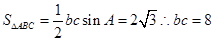 点评:主要是考查了正弦面积公式以及正弦定理的运用,属于基础题。