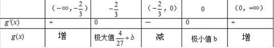 ∴g(x)在x1=0处取得极小值b,在x2=-$\frac{2}{3}$取得极大值$\frac{4}{27}$+b,