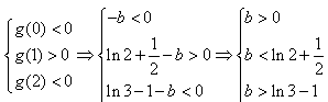 x+b在区间(0,2)有两个不等实根,求实数b的取值范围。