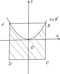 ∴△=4a2-4b≥0即a2≥b,其区域如图所示的阴影部分