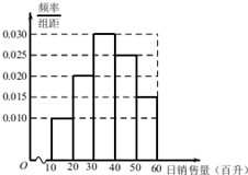 解答 解:(Ⅰ)日销售量在[20,30)的频率为1-10×(0.010+0.030+0.025+0.015)=0.2,![]()