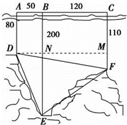 如图,为了解某海域海底构造,在海平面内一条直线上的A,B,C三点进行测量,已知AB=50m,BC=120m,于A处测得水深AD=80m,于B处测得水深BE=200m,于C处测得水深CF=110m,求∠DEF的余弦值.