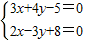 求直线l1:3x+4y-5=0和直线l2:2x-3y+8=0的交点M的坐标 .