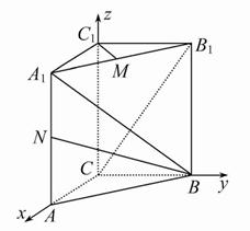 如图,直三棱柱ABC-A1B1C1,底面△ABC中,CA=CB=1,∠BCA=90°,棱AA1=2,M、N分别是A1B1,A1A的中点,