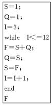分析:根据题意可知,第一个月有1对小兔,第二个月有1对成年兔子,第三个月有两对兔子,从第三个月开始,每个月的兔子对数是前面两个月兔子对数的和,设第N个月有F对兔子,第N-1个月有S对兔子,第N-2个月有Q对兔子,则有F=S+Q,一个月后,即第N+1个月时,式中变量S的新值应变第N个月兔子的对数(F的旧值),变量Q的新值应变为第N-1个月兔子的对数(S的旧值),这样,用S+Q求出变量F的新值就是N+1个月兔子的对数,依此类推,可以得到一个数序列,数序列的第12项就是年底应有兔子对数,我们可以先确定前两个月的兔子对数均为1,以此为基准,构造一个循环程序,让表示“第×个月的I从3逐次增加1,一直变化到12,最后一次循环得到的F就是所求结果.