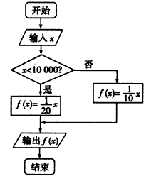 某公司为激励广大员工的积极 性,规定:若推销产品价值在10000元之内的年终提成5%;若推销产品价值在10000元以上(包括10000),则年终提成10%,设计一个求公司员工年终提成f(x)的算法的程序框图。