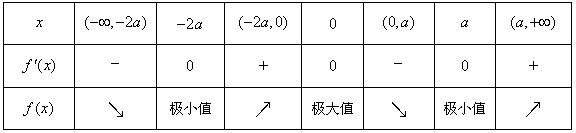 由a>0时,f′(x)在f′(x)=0根的左右的符号如下表所示