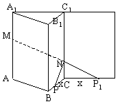 | (Ⅱ)如图1,将侧面 使其与侧成 点P运动到点P1的位置,连接MP1, 则MP1就是由点P沿棱柱侧面经过棱CC1到点M的最短路线, 设PC=x,则 在 由勾股定理得 ∴ ∴ |
