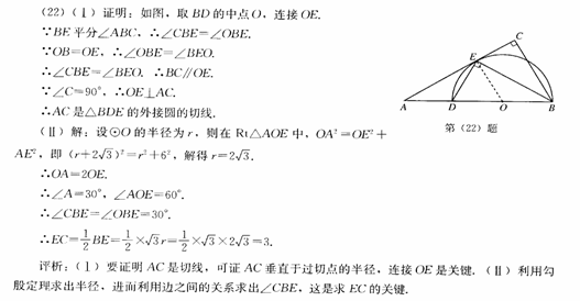 (Ⅰ)求证:AC是ΔBDE的外接圆的切线;