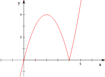 (2)作函数f(x)=x|4-x|的图象如下,![]()