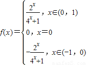 已知f(x)为定义在(-1,1)上的奇函数,当x∈(0,1)时,(1)求f(x)在(-1,1)上的解析式;