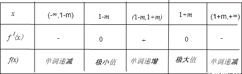 ∵m>0,所以1+m>1-m,当x变化时,f'(x),f(x)的变化情况如下表: