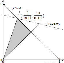 点评:本题考查的知识点是简单线性规划的应用,其中根据平面直线方程判断出目标函数Z=X+my对应的直线与直线y=mx垂直,且在