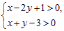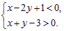 如下图,(x-2y+1)(x+y-3)<0表示的平面区域是( )