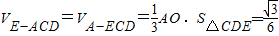 (2)根据等积法可得VE-ACD=VA-CDE,结合(1)中结论,可得AO即为棱锥的高,代入棱锥的体积公式,可得答案.