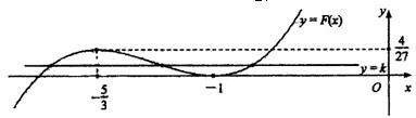 关于x的方程F(x)=k恰有三个不等的实数根.结合图形可知