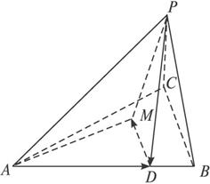 在三棱锥P—ABC中,D为底面ABC的边AB上一点,M为底面ABC内一点,且满足A.