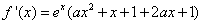 f(x)=ex(ax2+x+1),且曲线y=f(x)在x=1处的切线与x轴平行。