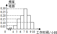 8.| 工作时间(小时) | [4,5) | [5,6) | [6,7) | [7,8) | [8,9) | [9,10) |