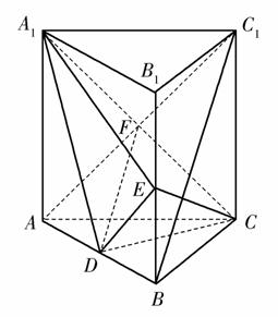 [解析] (1)证明:如图,连结AC1交A1C于点F,则F为AC1中点,又D是AB中点,连结DF,则BC1∥DF,