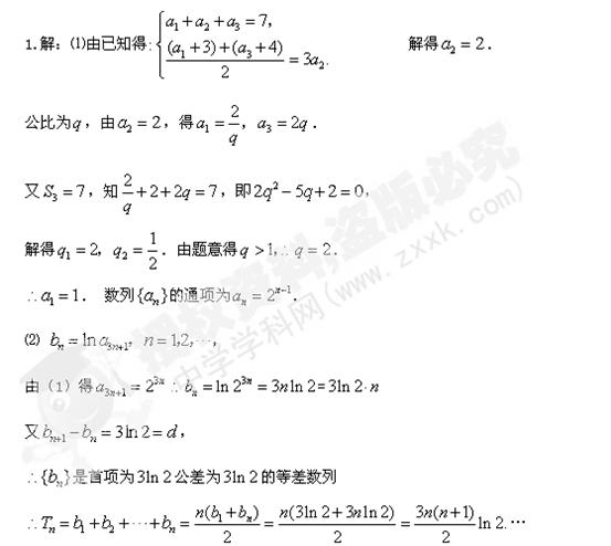 设是公比大于1的等比数列,为数列的前项和.已知,且构成等差数列.⑴求数列的通项;⑵令求数列的前项和.