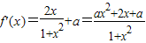 已知函数f(x)=ln(1+x2)+ax.(a≤0)(1)若f(x)在x=0处取得极值,求a的值;