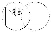 解:设花坛的长、宽分别为x m、y m,根据设计要求,矩形花坛应在喷水区域内,且顶点应恰好位于喷水区域的边界(如图),依题得(