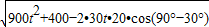 由题意可知:(vt)2=202-(30t)2-2•20•30t•cos(90°-30°)