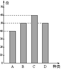 某学校餐厅新推出A,B,C,D四款套餐,某一天四款套餐销售情况的条形图如下. 为了了解同学对新推出的四款套餐的评价,对每位同学都进行了问卷调查,然后用分层抽样的方法从调查问卷中抽取20份进行统计,统计结果如下面表格所示: