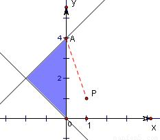 当Q点在可行域内的A(0,4)时,