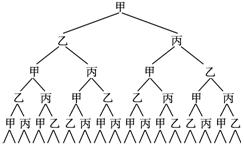 从上图发现经过n次传球共有2n种方法,第n-1次传球后不在甲手中的方法数与第n次传球后球在甲手中的方法数相同,为此可建立递推关系.
