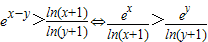 ∴当x>y>e-1时,有