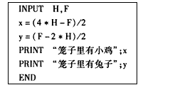 一个笼子里有若干小鸡和若干兔子,数头共有35 个,数腿共有94条,那么共有多少小鸡?多少兔子?编写程序解决。