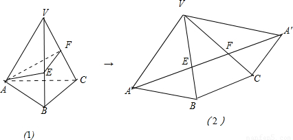 解:如图所示:沿着侧棱VA把正三棱锥V-ABC展开在一个平面内,如图(2),