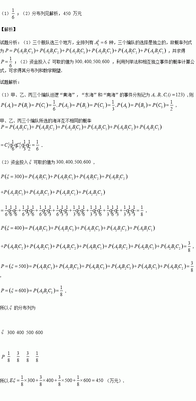 (2)设巡逻“黄海”,“东海”和“南海”每个编队需要投入分别为