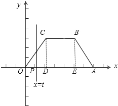 20.如图(1),等腰梯形OABC的上、下底边长分别为1、3,底角为∠COA=60°.记该梯形内部位于直线x=t(t>0)左侧部分的面积为f(t).试求f(t)的解析式,并在如图(2)给出的坐标系中画出函数y=f(t)的图象.分析 过C、B分别作OA的垂线,垂足分别为D、E,设直线x=t与x轴的交点为P,