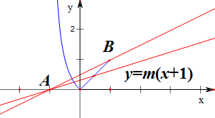 从而作出函数y=m(x+1)与函数f(x)在[-1,1]上的图象如下,![]()