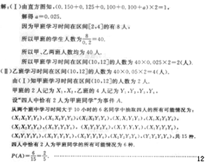£¨II£©´Ó¼×¡¢ÒÒÁ½¸ö°àÿÌìÆ½¾ùѧϰʱ¼ä´óÓÚ10¸öСʱµÄѧÉúÖÐÈÎÈ¡4È˲μӲâÊÔ£®Çó4ÈËÖÐÇ¡ÓÐ2ÈËΪ¼×°àͬѧµÄ¸ÅÂÊ¡£