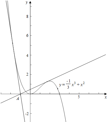 则$\frac{{y}_{1}-0}{{x}_{1}+1}$=-${{x}_{1}}^{2}$+2x1,且y1=-$\frac{1}{3}$x13+x12,