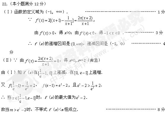 ∴ g(x)在[0,1]上递减, 在[1,2]上递增. ………………………………10分