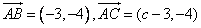 已知△ABC三个顶点的直角坐标分别为A(3,4)、B(0,0)、C(c,0).