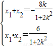 ,消去y得关于x的方程(1+2k2)x2+8kx+6=0